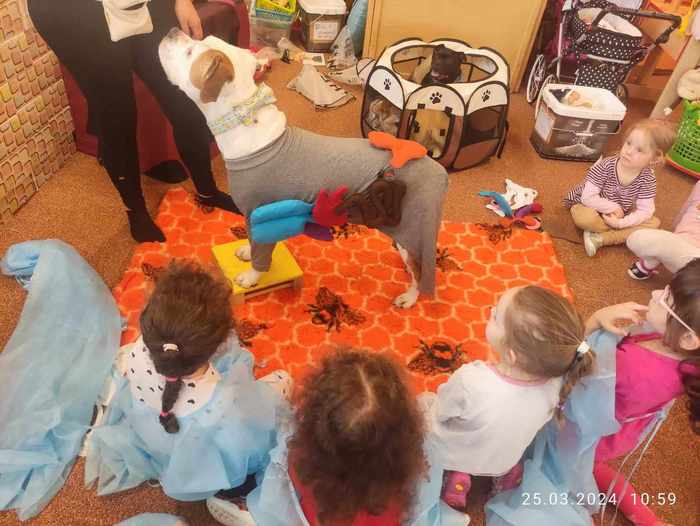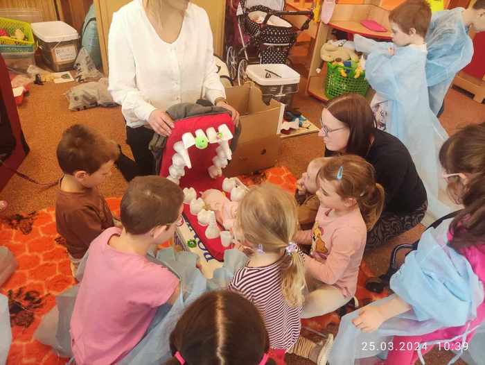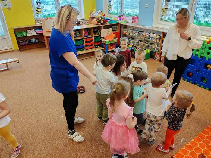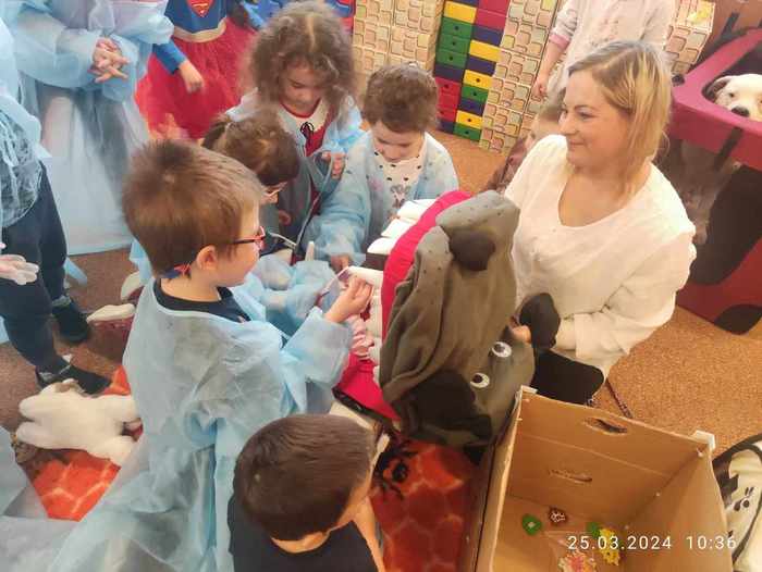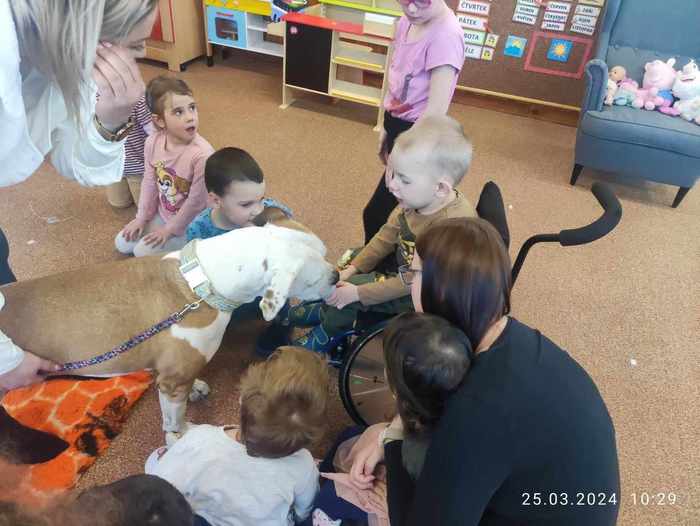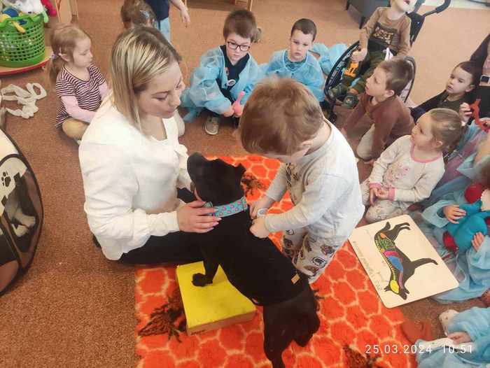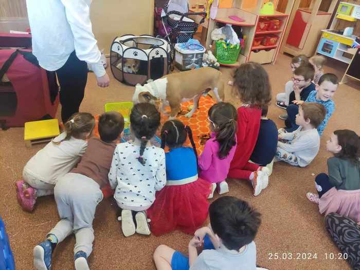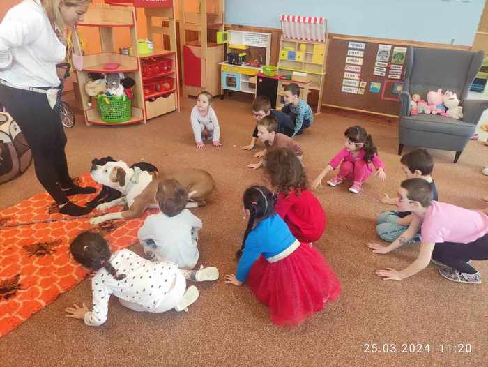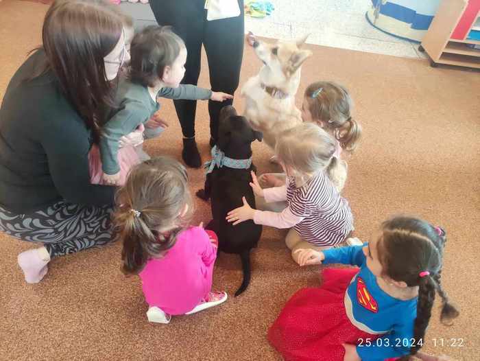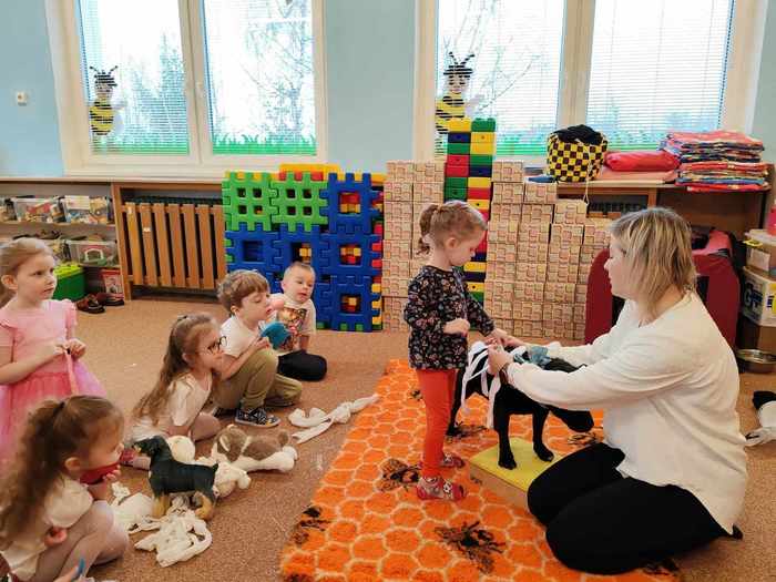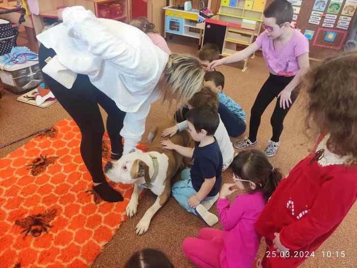 Dnes do naší MŠ zavítala certifikovaná canisterapeutka se svými čtyřnohými svěřenci. Děti se dozvěděly něco o tom, jak pejsci komunikují s lidmi, jak dávají najevo své pocity a nálady. Jak se mají správně chovat k pejskům, co naopak nemají rádi. Že mohou mít také své zdravotní problémy a kdo jim v takových okamžicích pomůže. Děti si zahrály na veterináře, pomocí speciálních brýlí si mohly vyzkoušet, jak pejsci vidí barvy. Na závěr ještě pomazleníčko, pár psích kousků pro legraci a pamlsek od dětí na rozloučenou.