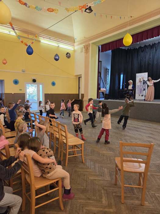Včera děti zažily spoustu zábavy s Divadlem Za oponou – hudebním interaktivním divadlem plným zpěvu, tance a her. Děti byly nadšené, smály se, tancovaly, hádaly hudební hádanky a ochotně se zapojovaly do všech aktivit.