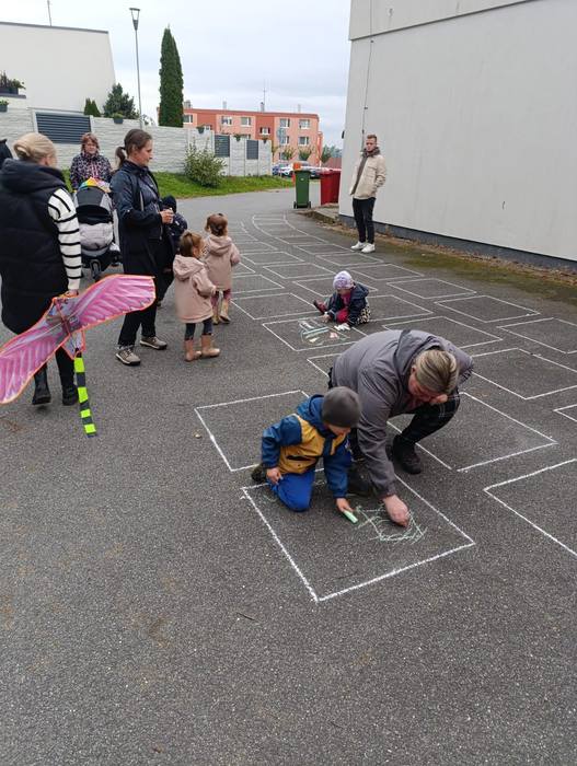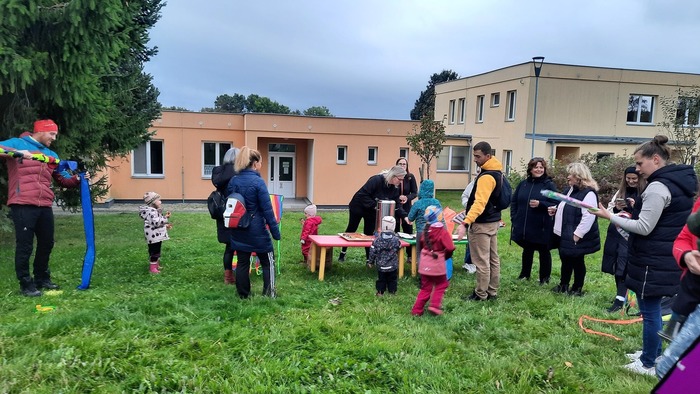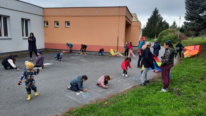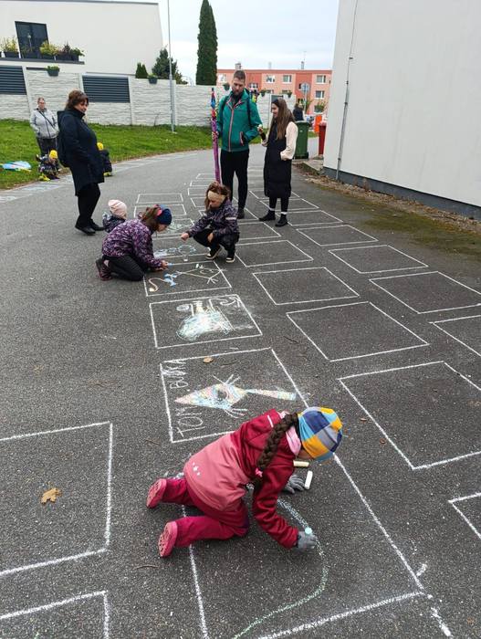První pokus nevyšel, ale ve čtvrtek 3. 10. se na Drakiádě nad školkou sešly na tři desítky dětí i s doprovodem. Zamračeno, sychravo, bezvětří... A tak se jen několika málo dráčkům podařilo vylétnout k nebi. Příjemnou podzimní atmosféru děti znásobily ještě krásnými kresbami. Snad si všichni Drakiádu užili, k dobré náladě přispělo chutné občerstvení pro děti i rodiče.