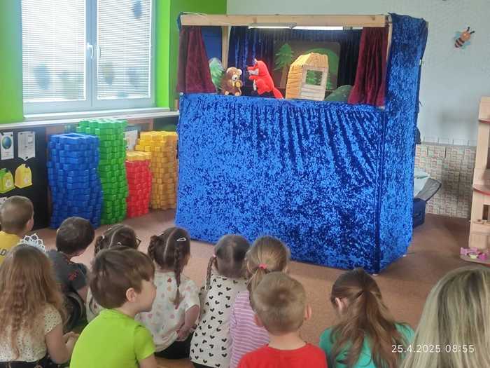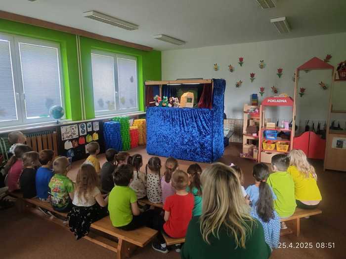 Do školky zavítaly členky divadla ze Šternberka. Zaměřují se na klasické pohádky, které děti většinou znají, a proto se mohou do děje zapojit a spolupracovat. Děti společně shlédly tři pohádky plné básniček a písniček, představení se všem líbilo.