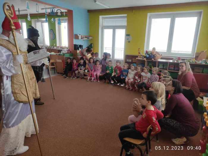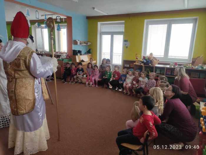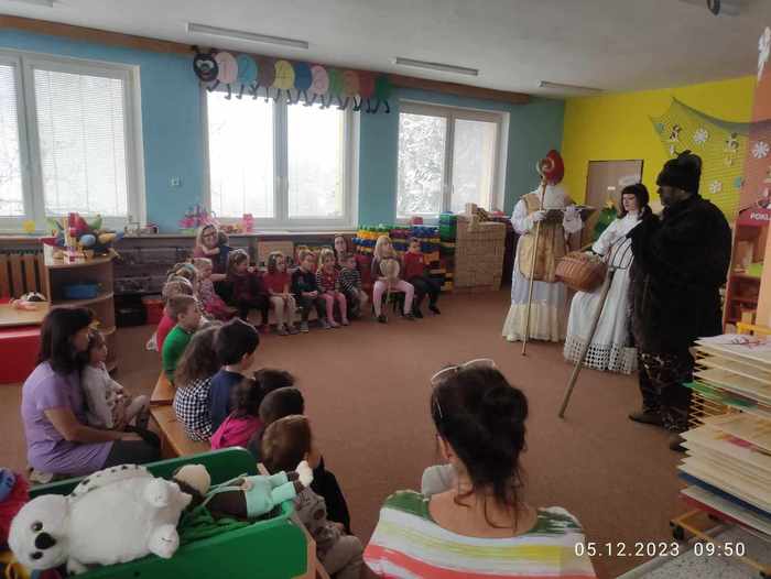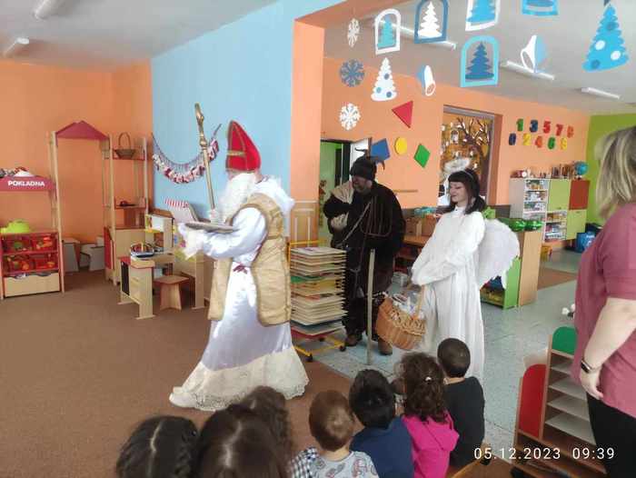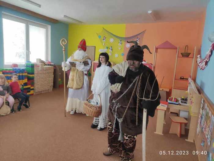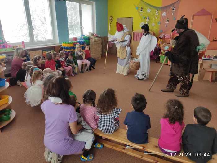 Obávaný čert, ale i Mikuláš s andělem dorazili dopoledne do naší školky. Z knihy hříšníků přečetli některá jména dětí a jejich neřesti, a to se všichni velmi divili. Slzičky po chvilce vystřídal úsměv nad sladkostmi od andělíčka. Na rozloučenou zazpívaly návštěvě písničku všechny děti, vyfotily se však jen ti nejotrlejší.