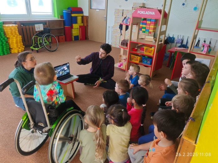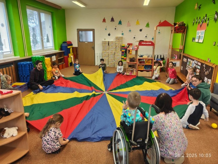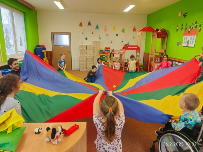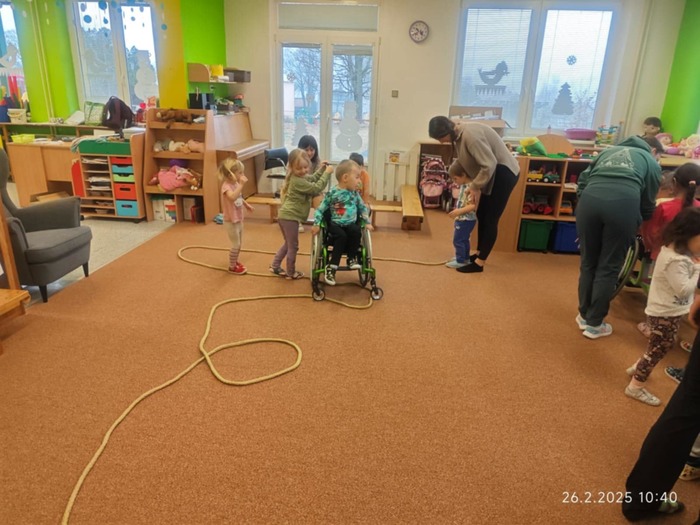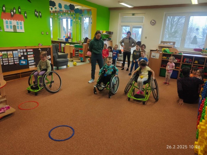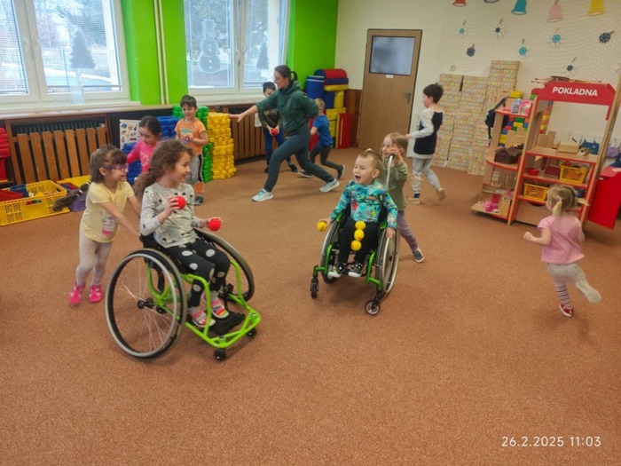 Centrum APA (Aplikované pohybové aktivity) působí pod záštitou krajského úřadu už spoustu let. Pavel a Magdaléna z tohoto Centra dnes zavítali do naší školky se svým programem plným her, soutěží a zábavy. Hlavní jejich vizí je podpora dětí se speciálními potřebami a snaha zapojit je do aktivního života spolu s ostatními dětmi. Děkujeme za jejich práci!