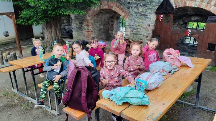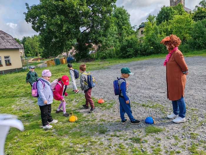 I my v Horním Městě jsme se dočkali plánované akce Pohádkový les, kterou pro děti připravila MAS Rýmařovsko. Pro nepřízeň počasí byl výlet 2x zrušen, zato dnes nám vyšlo počasí parádně. Na stezce plné trpaslíků, skřítků a víl plnily děti po skupinkách různě náročné úkoly, sportovní i vědomostní. To víte, že si s nimi školkáčci i školáci poradili na jedničku. Společně vyplnili tajenku a získali tak „kouzelné“ klíče, které přinášejí štěstí.