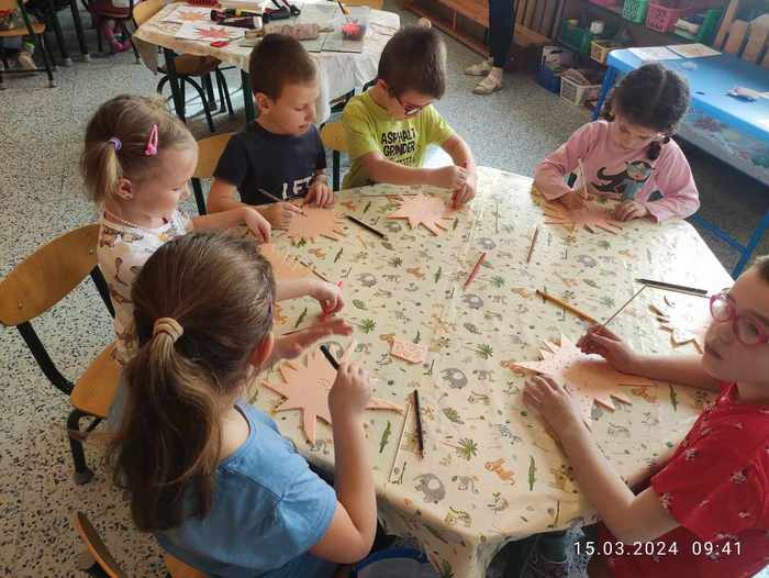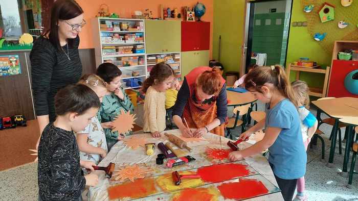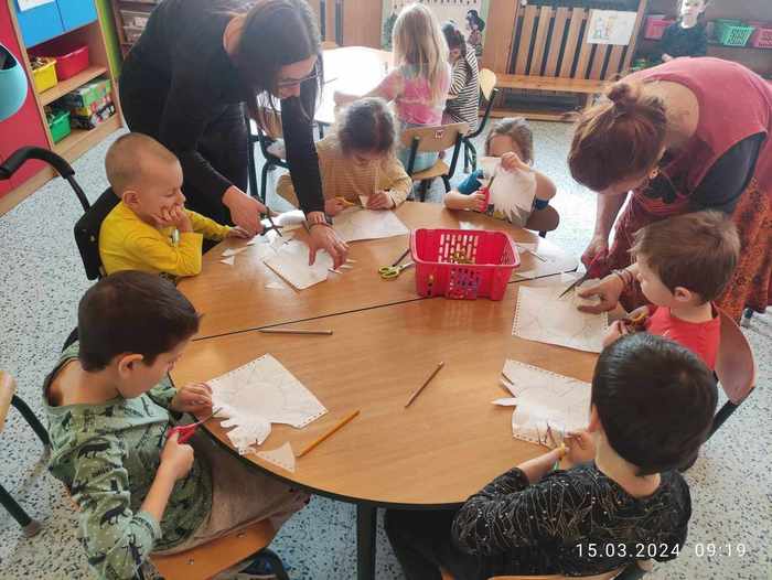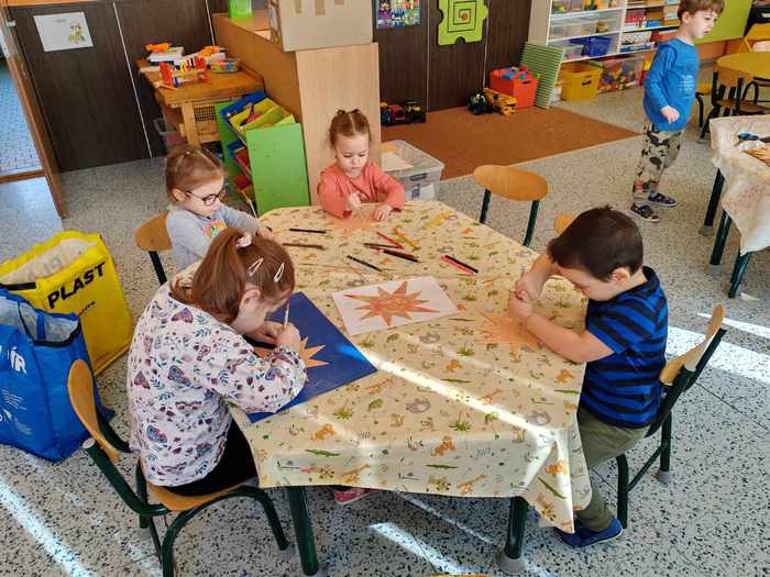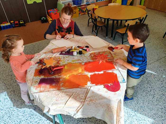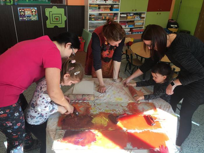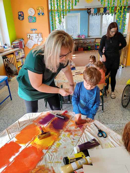 V pátek 15. března si děti při projektovém dnu ve školce vyzkoušely novou, zajímavou grafickou techniku pod vedením paní Pánkové ze ZUŠ Rýmařov. Připravily si šablonu, ryly do polystyrenové destičky své vlastní vzory, pak svůj výtvor válečkem tiskly na papír. Z papíru se dále tiskne třeba na látku...a výsledná taška bude krásným dárečkem pro maminky. Práci zvládli malí i velcí, jsou to šikulky!